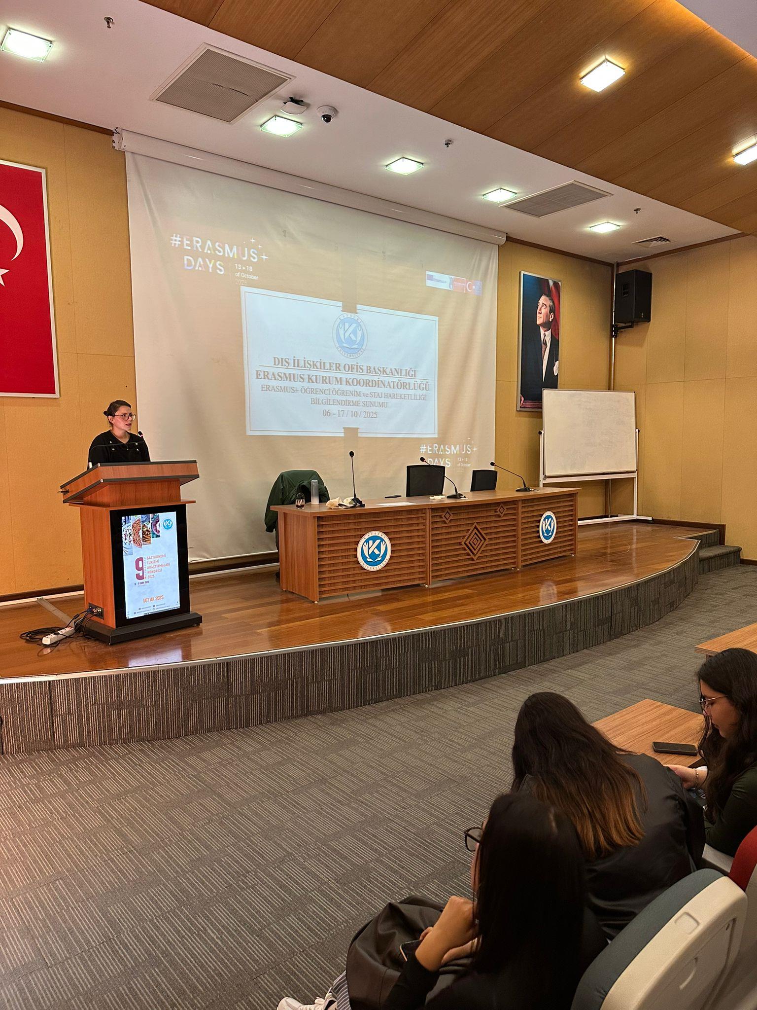 Our university's Office of International Relations held an “Erasmus+ Student Information Meeting” and a “Kayseri University Eurodesk Turkey Contact Point Presentation” in our faculty's conference hall on Tuesday, October 14, at 11:30 a.m.