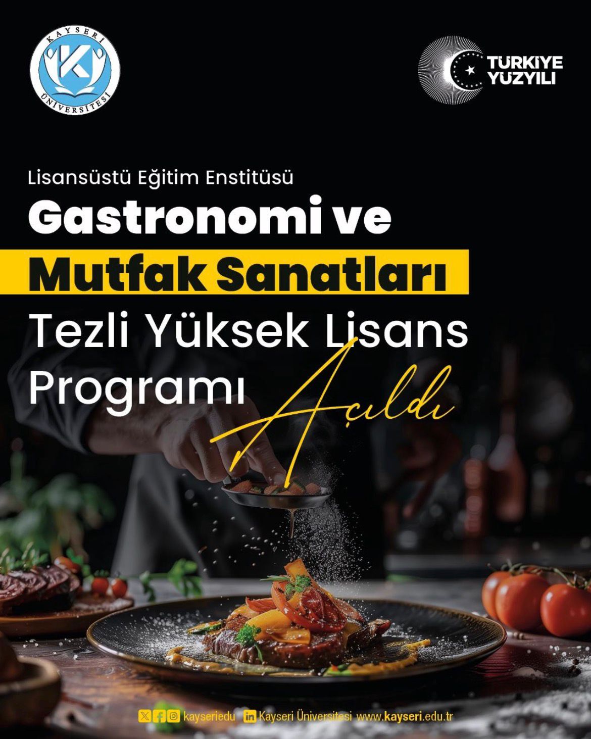 Üniversitemiz Lisansüstü Eğitim Enstitüsü bünyesinde Gastronomi ve Mutfak Sanatları Tezli Yüksek Lisans Programı açılmıştır.